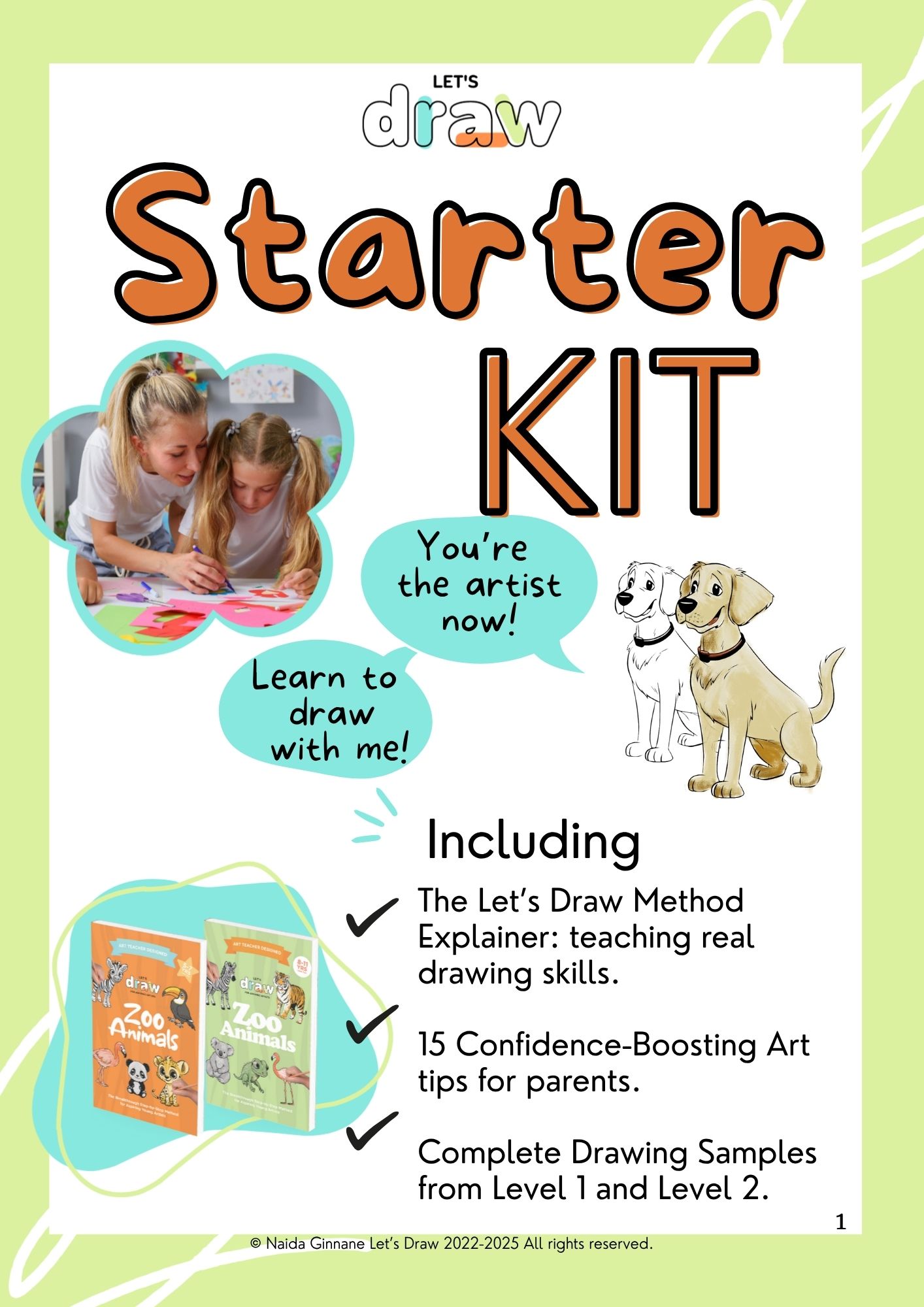The Starter Kit is an ideal way to take a peek at the 'Let's Draw' Method and find out if the book experience is right for your child.